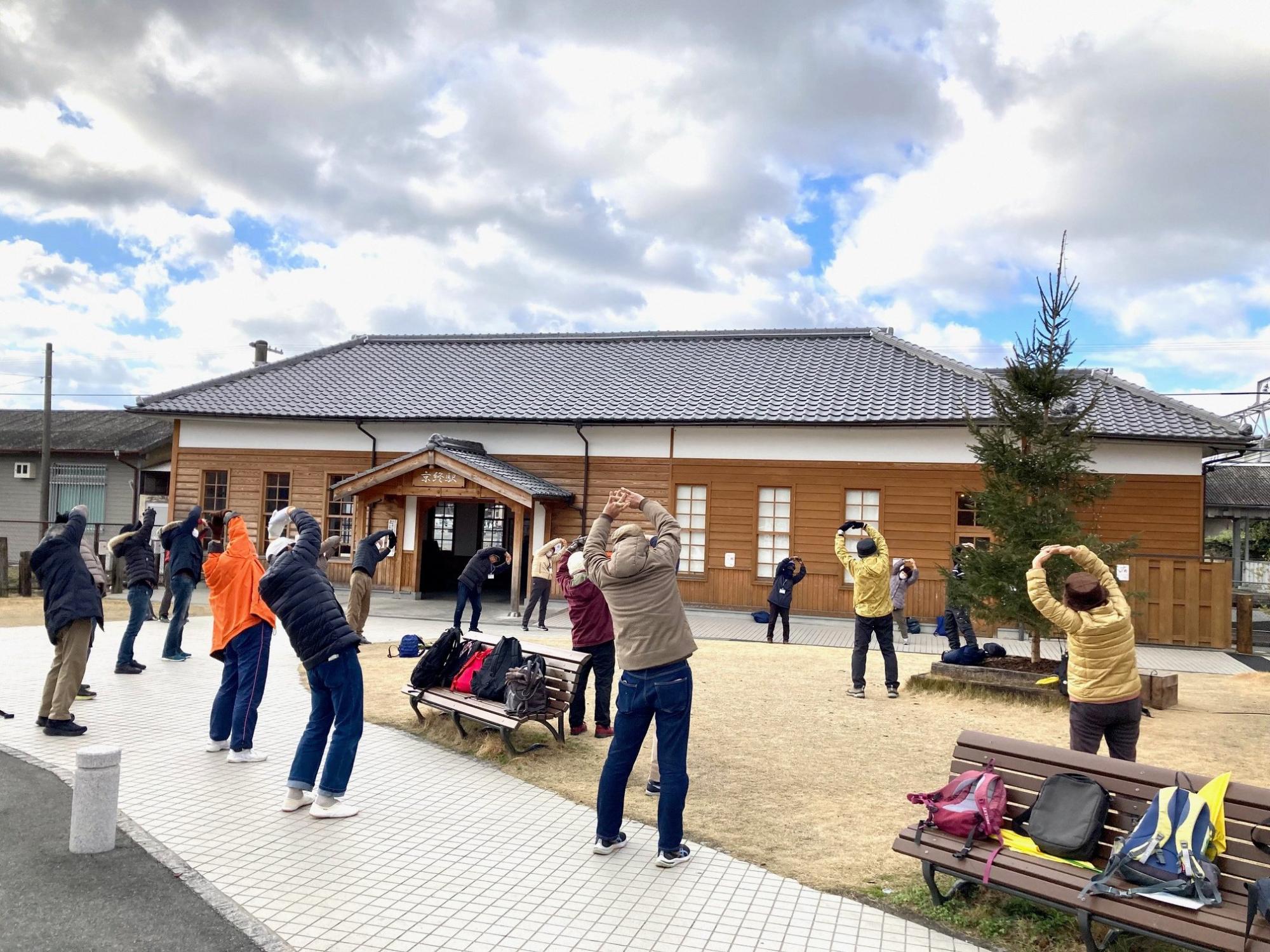 雲一つない絶好のウォーキング日和になりました。暑い夏を乗り越え久しぶりのウォーキングだったのでメンバーの方々も楽しみにして参加されました。JR大津駅を下車しストレッチ体操をして身体をほぐして出発です。