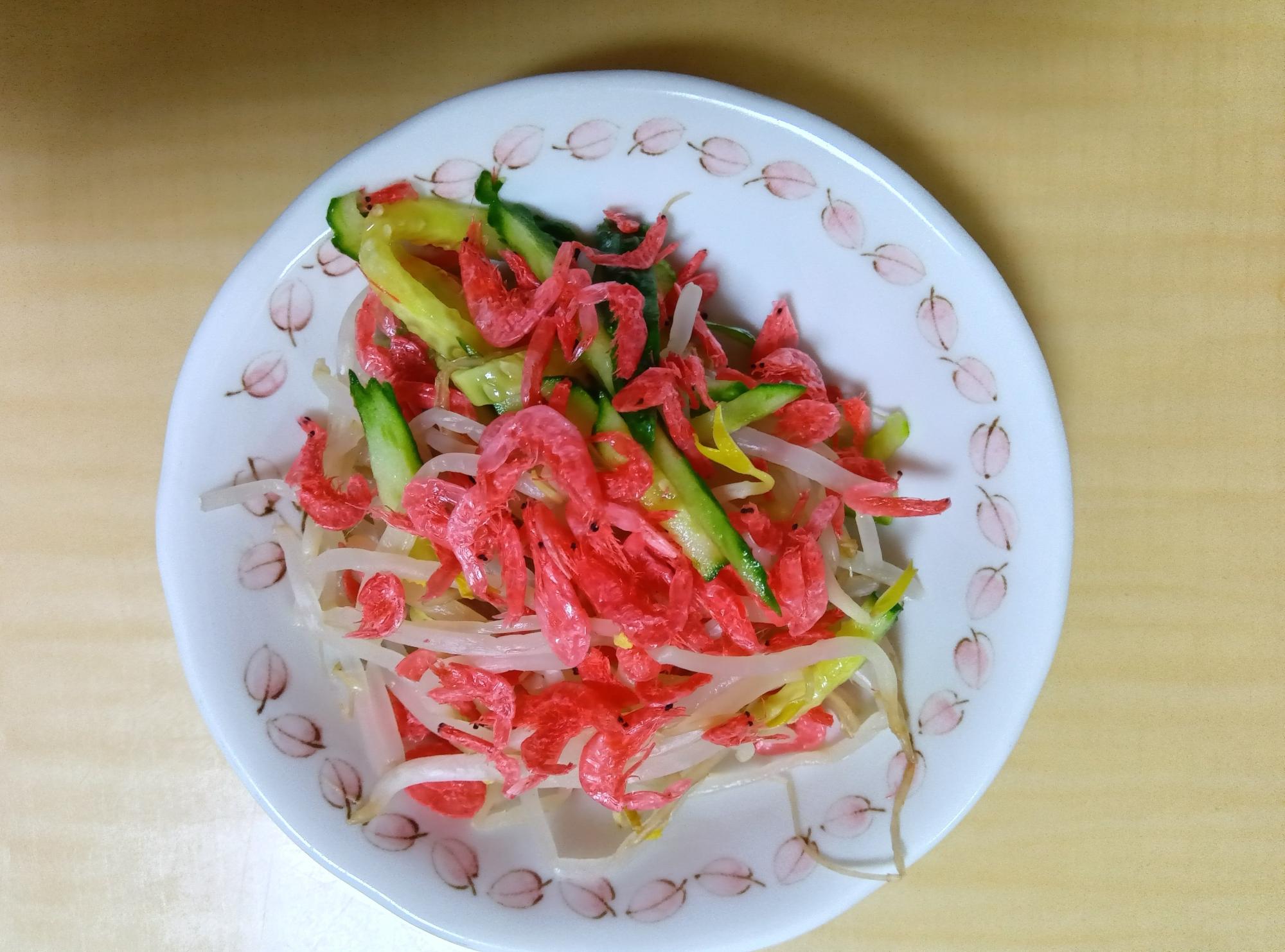 あすなろ会今月のレシピ「桜えびともやしの和えもの」