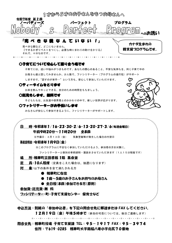 ノーバディーズ・パーフェクト・プログラム(子育て中のお母さんへ)参加者募集