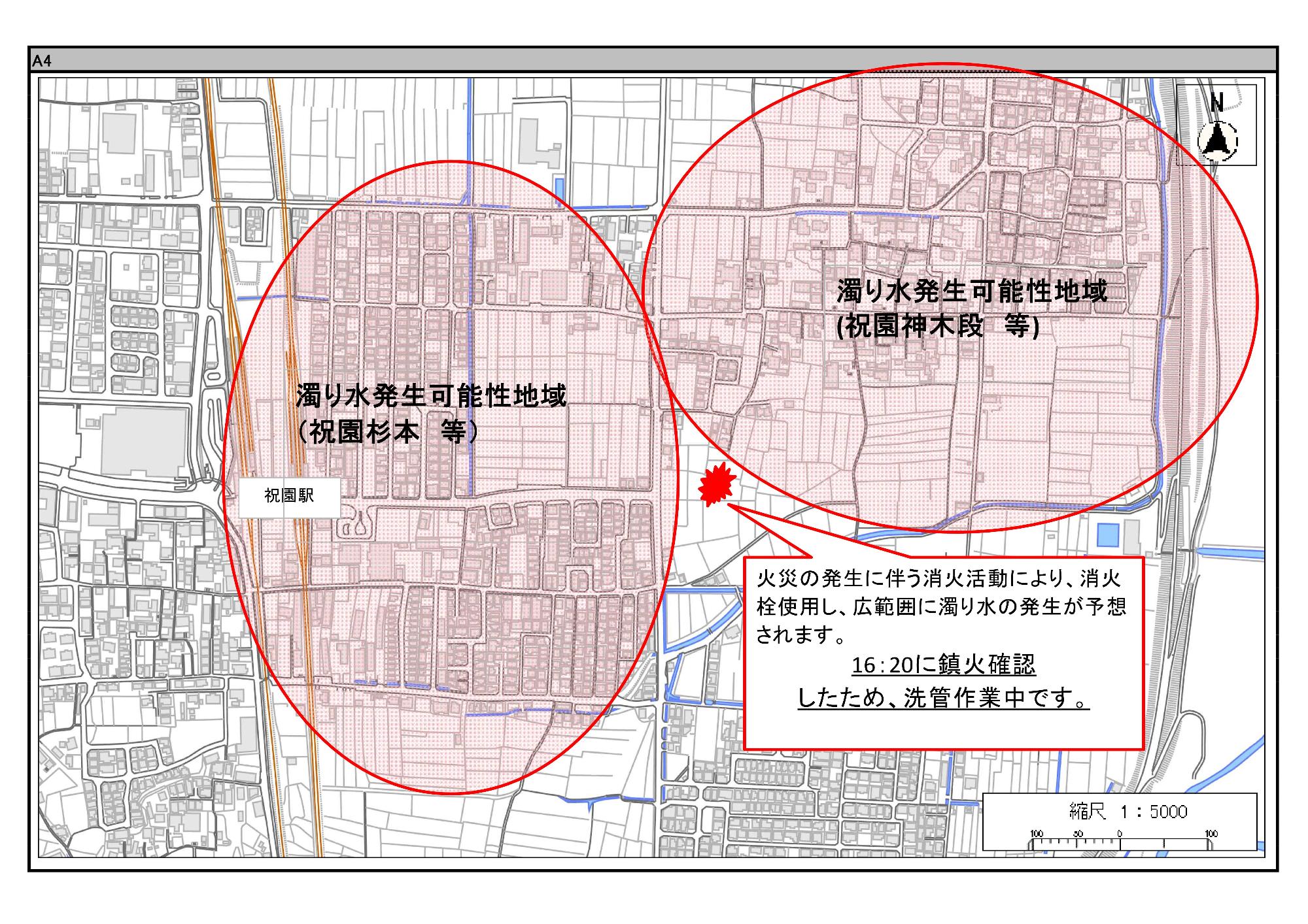 祝園地区で火災に伴う水道水の濁り水発生(午後4時45現在)