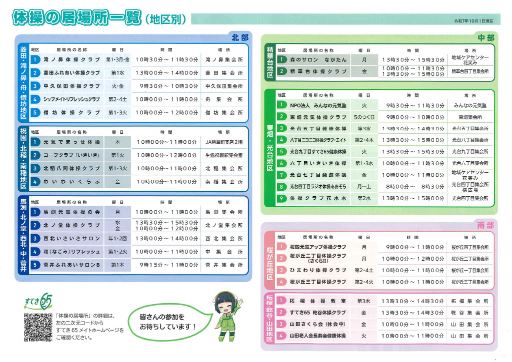 地域の身近な場所(集会所等)で体操を始めてみませんか?(体操の居場所一覧参照)
