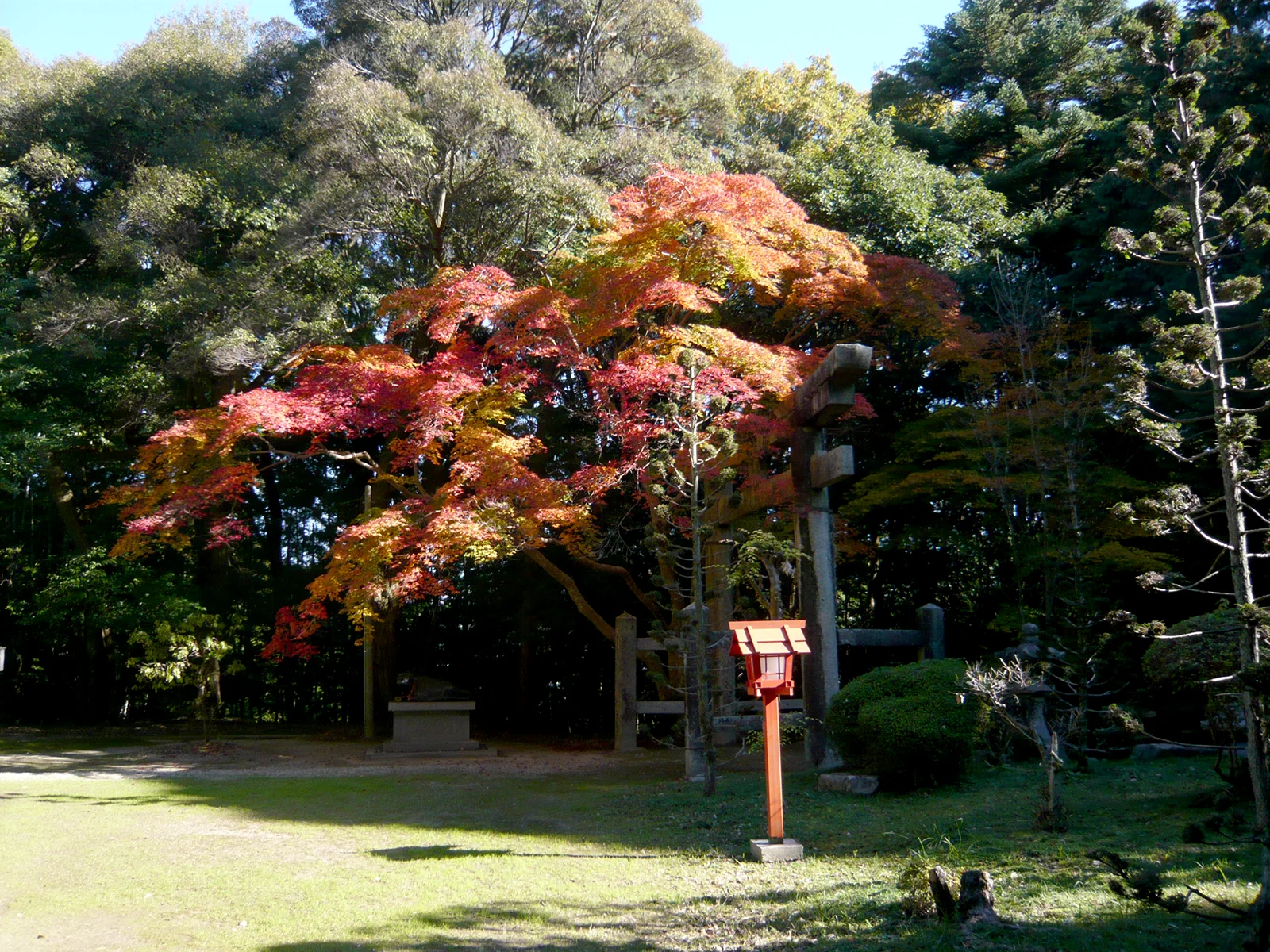 山の東側の高く長い石段を上りきると、紅葉の美しい樹木に囲まれた鞍岡神社です。