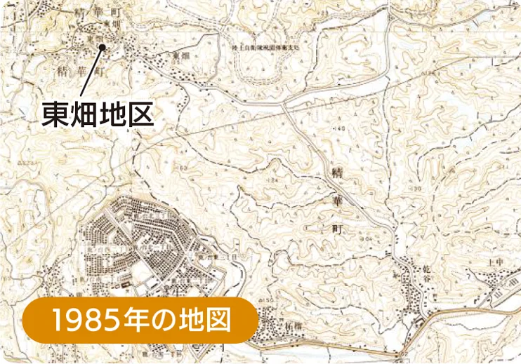 まだ精華町の開発がされていない1985年の地図からは、一面が田んぼや山林だった様子がうかがえます。