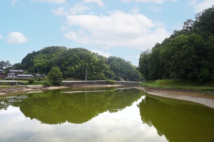 蟹満池は東畑地区のもう一つの溜池です。こちらは地区の北側で、鳥谷池と比べて格段に小さく、谷あいにあります。