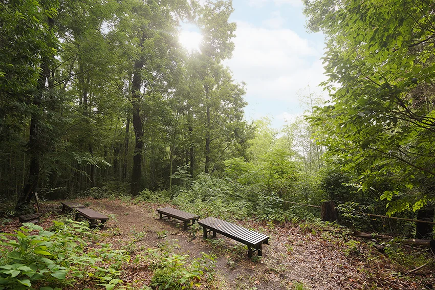 三つの登山ルートのうちよく利用されるのは南東側です。その急斜面を降りたところに「わくわく嶽山広場」があり、イベントが催されたり、若草山の山焼きを遠くに見ることもできる場所です。