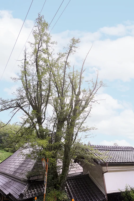今から50年くらい前までは家の屋根の2倍くらいの高さまで、青々とこんもり茂っていました。その頃、この木の側に新しい道がつくられ根の一部を切ることになりました。そして、それから少しずつ少しずつ元気をなくしていきました。どうしてそのとき、ちゃんと樹を守ろうとしなかったのか!が悔やまれます。